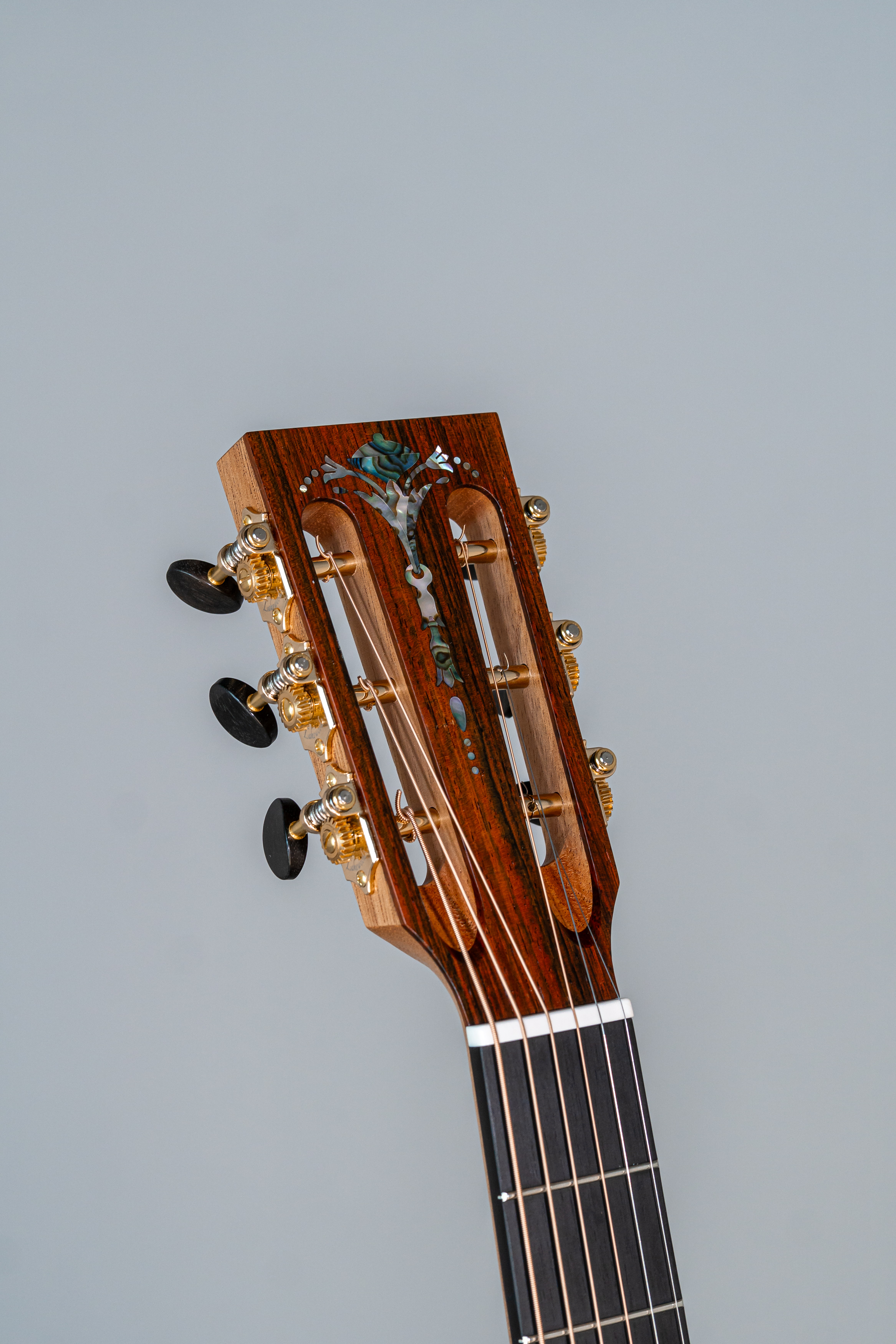 - Classical slotted peghead with straight top