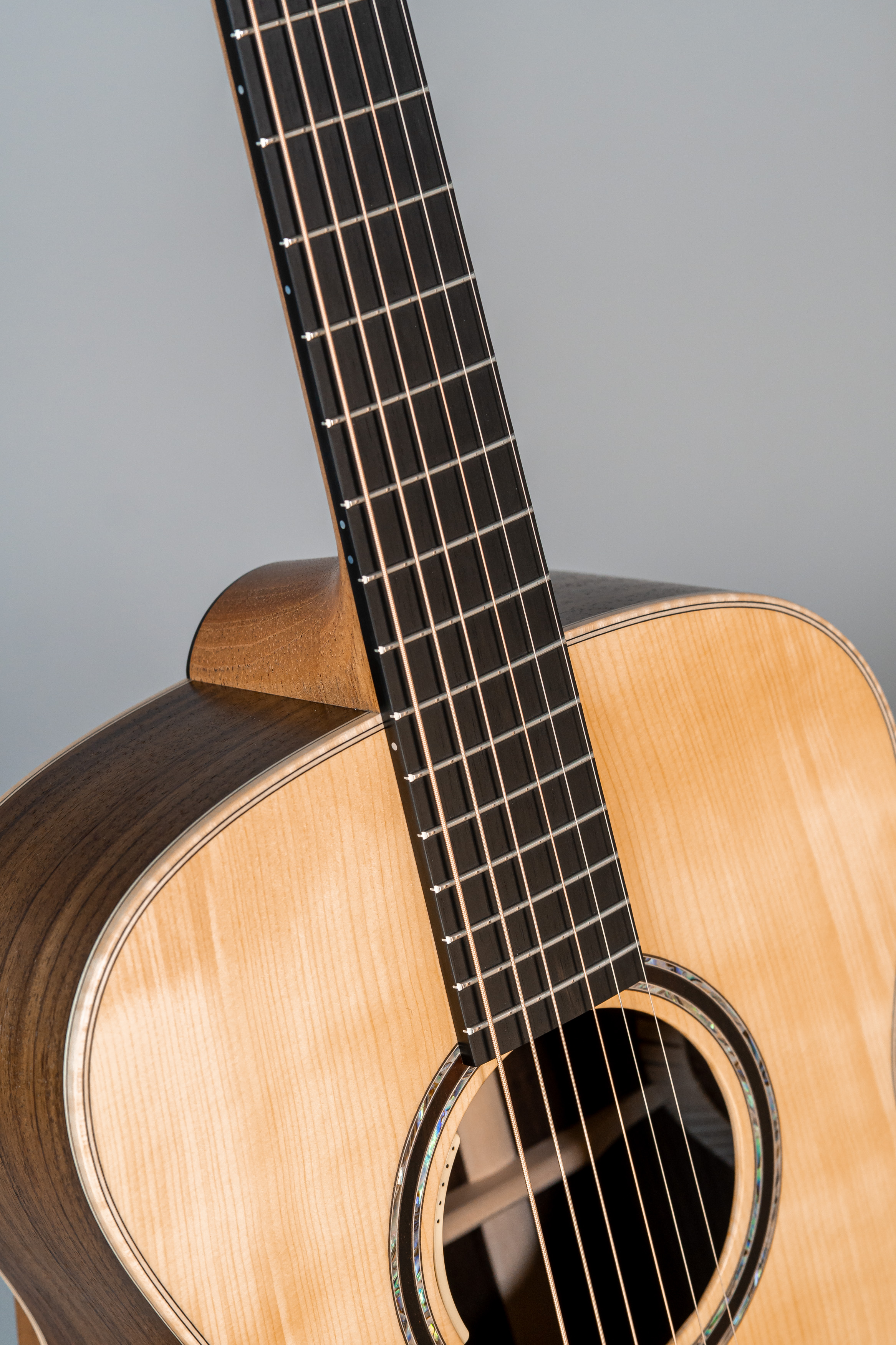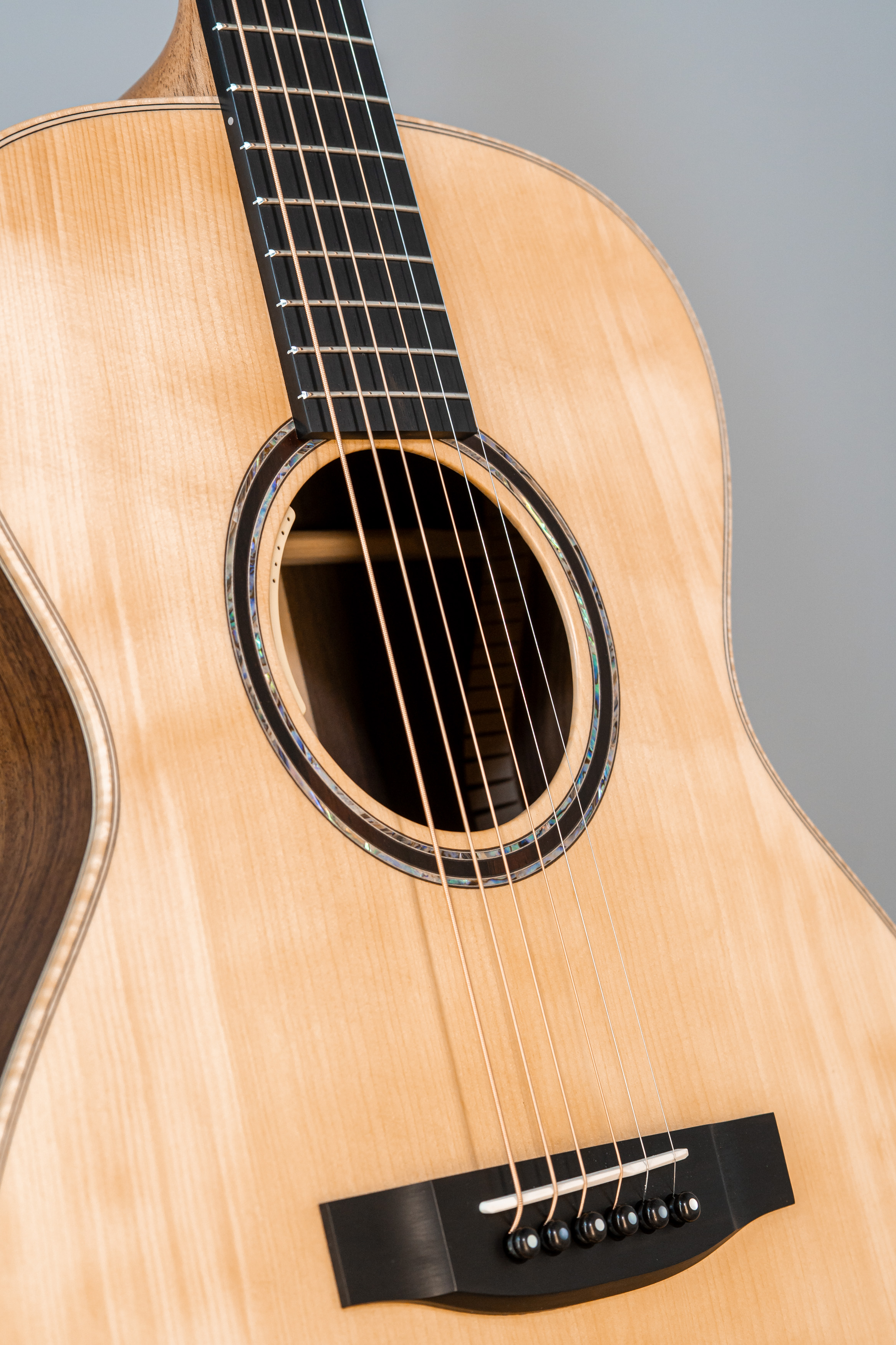 - Wood core slim with abalone purfling