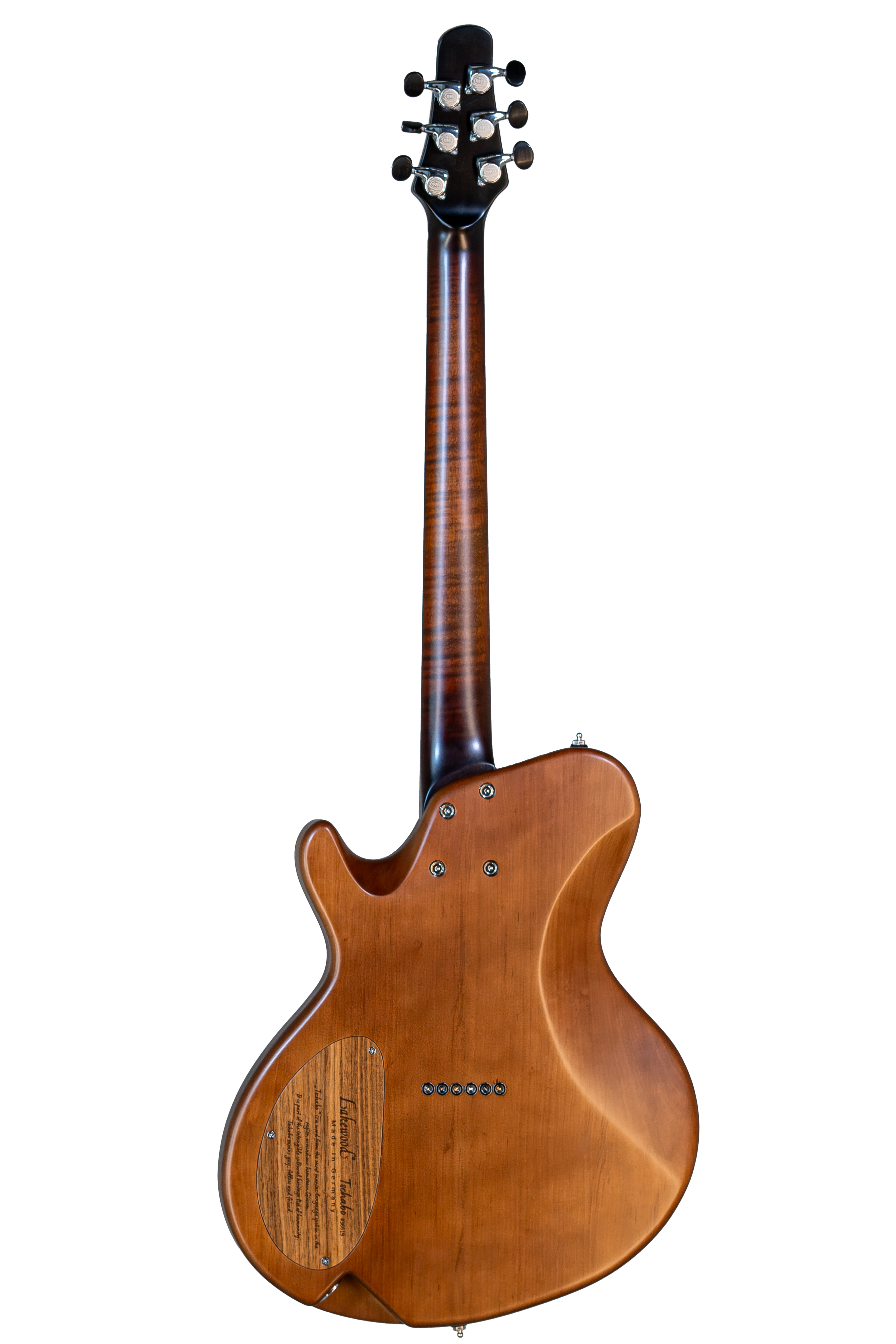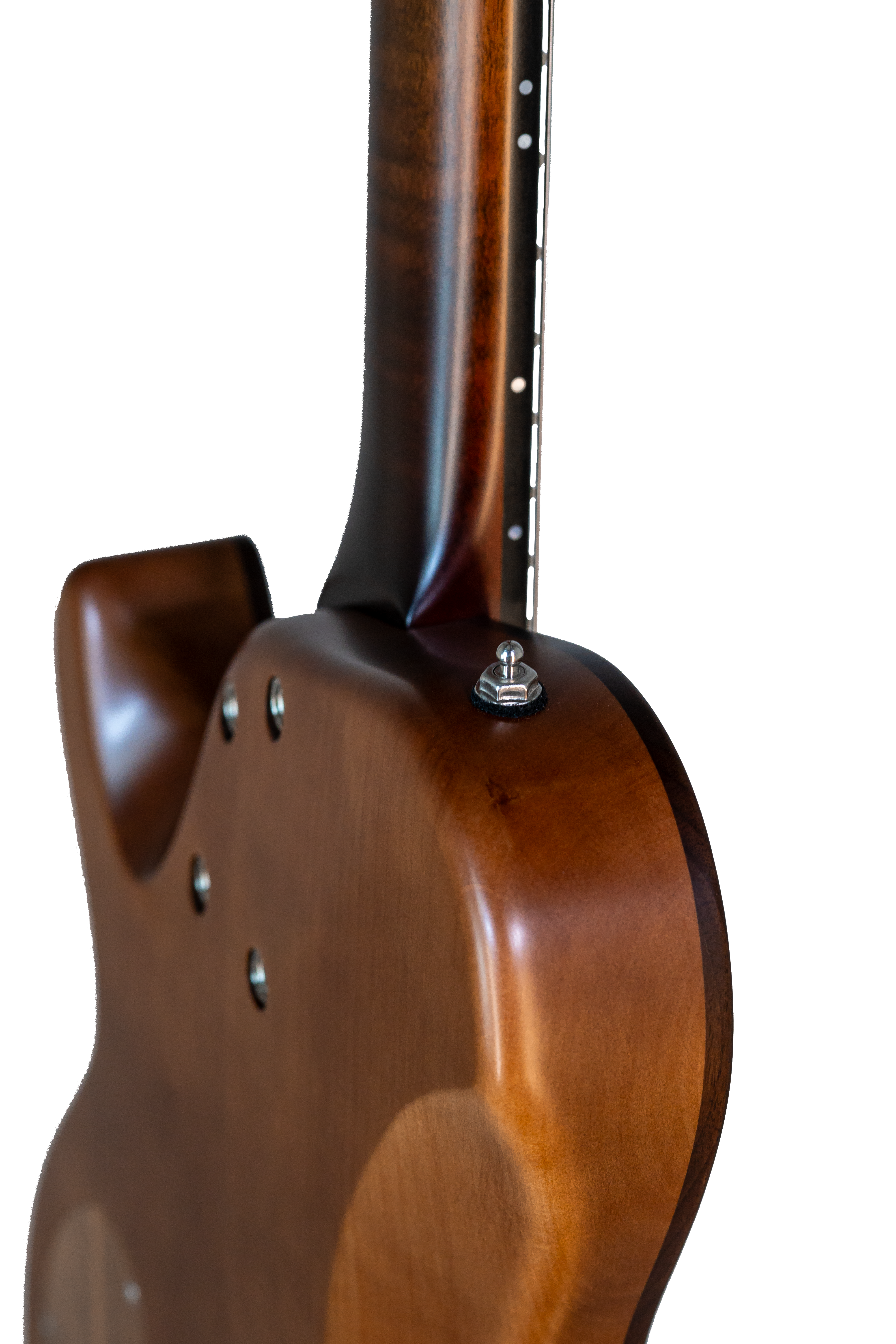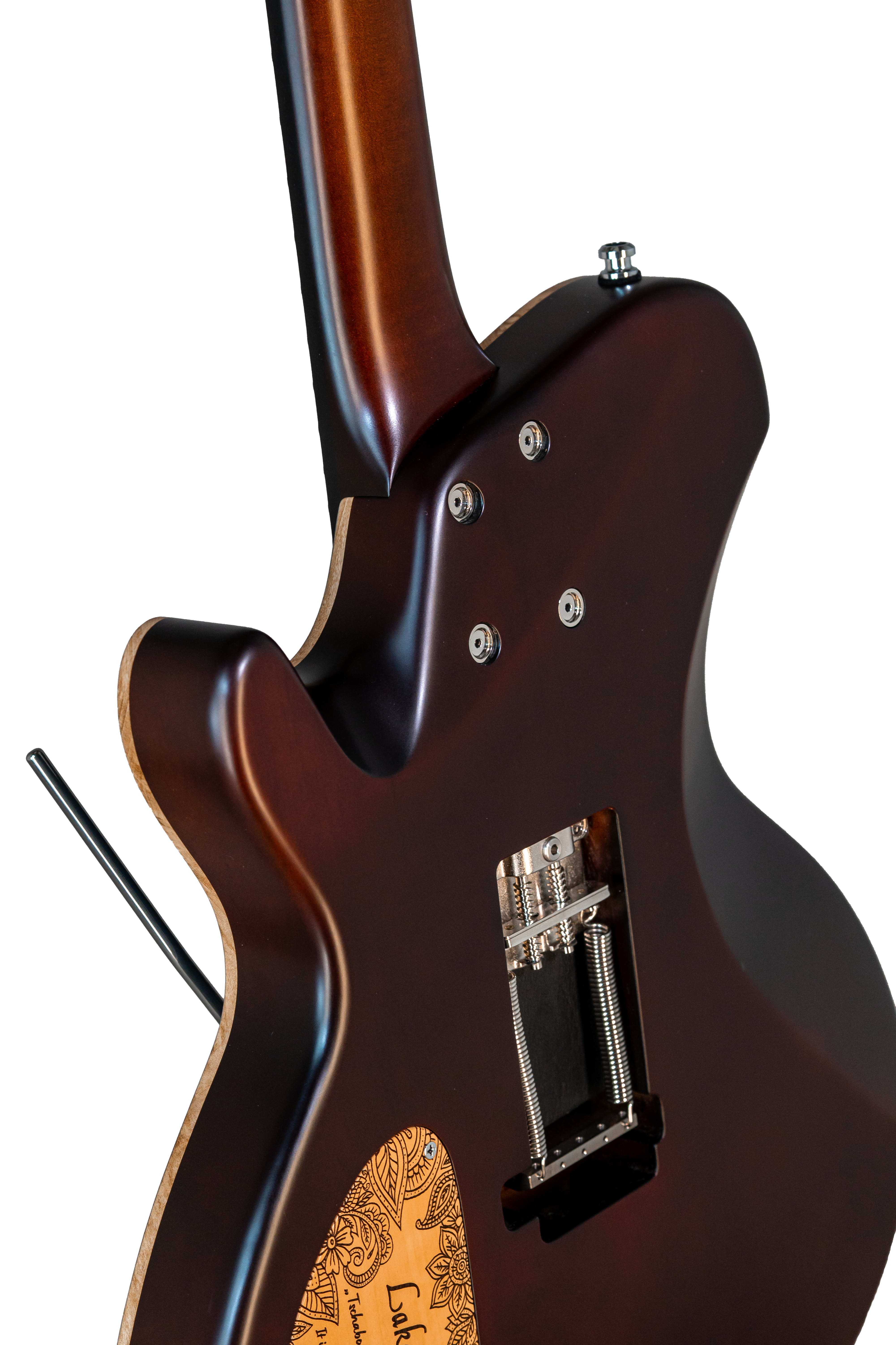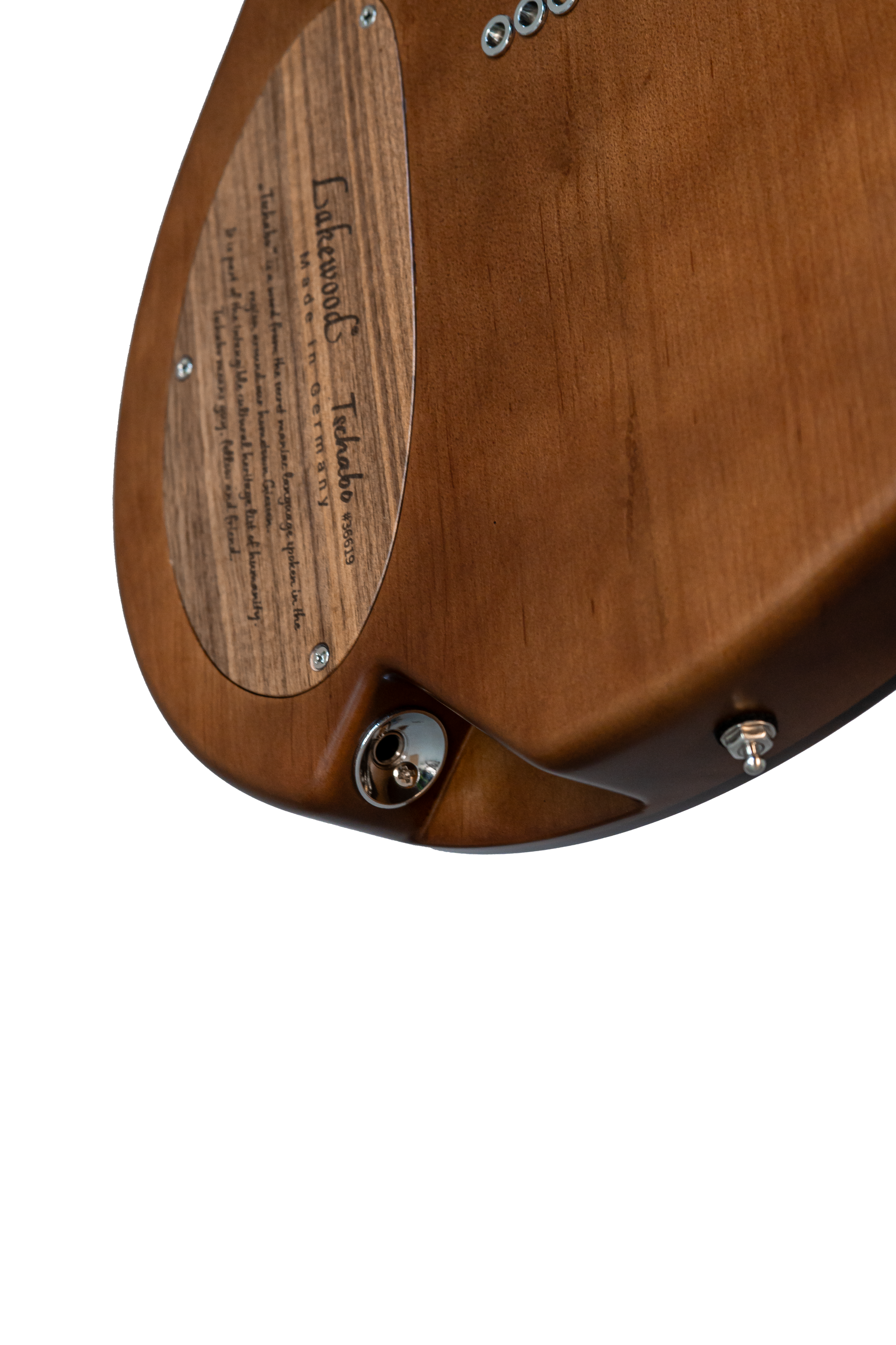 That was the beginning of the project. From then on, we discussed how the new guitar should be – how it should look, feel, and of course sound and be named. ‘Tschabo’ is a word from the local Manic dialect of our region. It means friend, companion, and good guy. ‘Tschabo’ was to become our new electric guitar model. Our project now had a name. The first ‘Tschabos’ were built – unmistakable one-of-a-kind instruments.